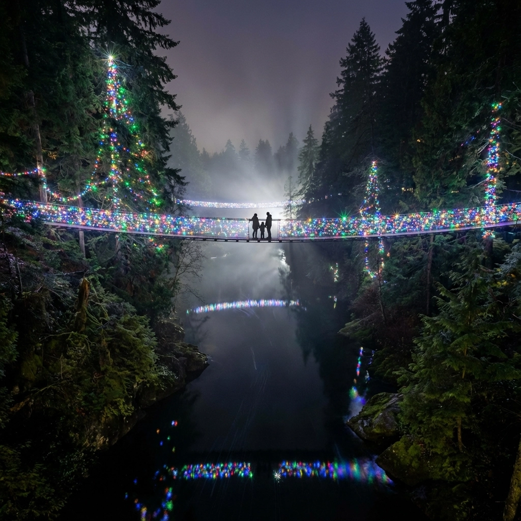 Cross over into Christmas magic at one of the world's most famous suspension bridges! Through January 18th, Capilano Suspension Bridge transforms into a glittering wonderland with thousands of lights dancing through the ancient rainforest canopy.